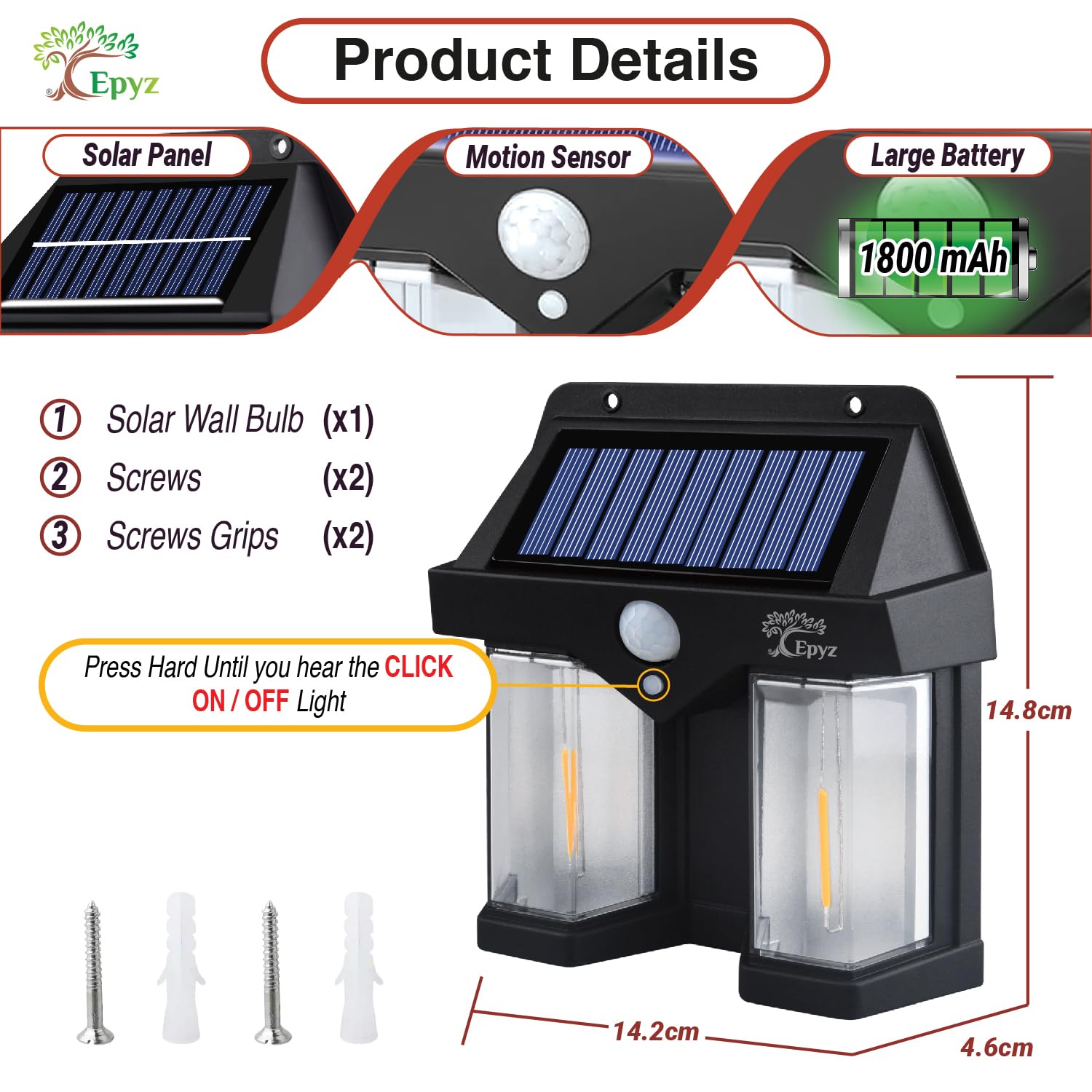 400023 Outdoor Waterproof Solar Double Wall Motion Sensor Light, 3 Lighting Modes Solar Security Wall Light