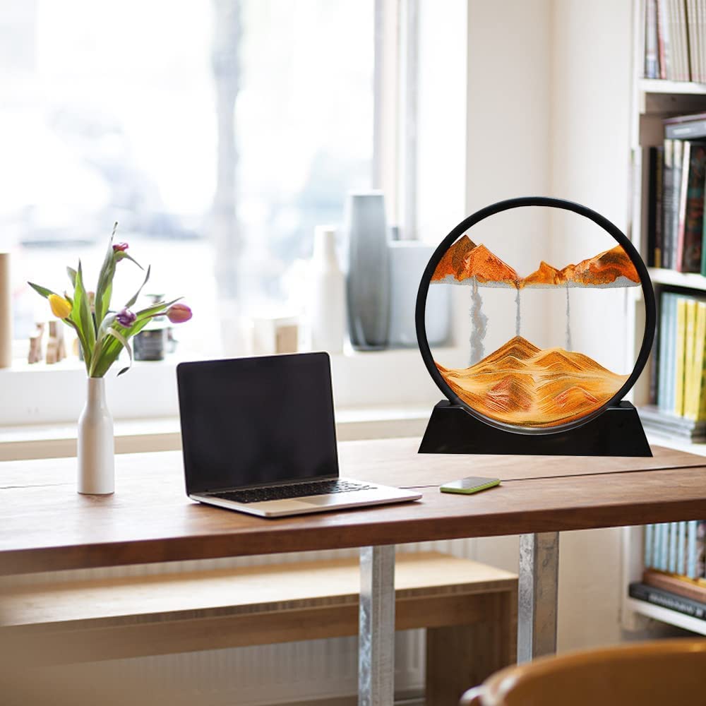 - [ Exquisite Design ] Moving Sand Picture Is A Mesmerizing And Dynamic Art Piece. Rotating The Glass, And Enjoy The Sight Of The Sand Swirling And Shifting Into Clouds And Landscapes, Ocean And Mountains Of Intricate Lines And Patterns.