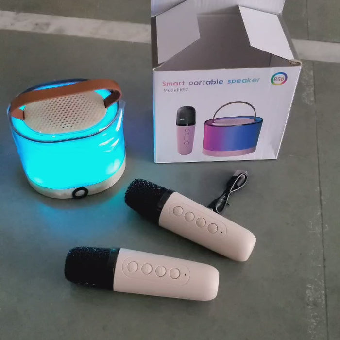 - 【Excellent Sound Quality and Colorful Lights】The portable karaoke delivers plenty of volume, Bluetooth speakers and 2 wireless microphones are equipped with high-performance audio drivers and advanced digital signal processor to ensure excellent stereo sound quality. Equipped with a variety of light modes that can be switched. Dazzling colorful lights will dance with the music to create a joyful atmosphere, creating a dynamic karaoke experience for users.